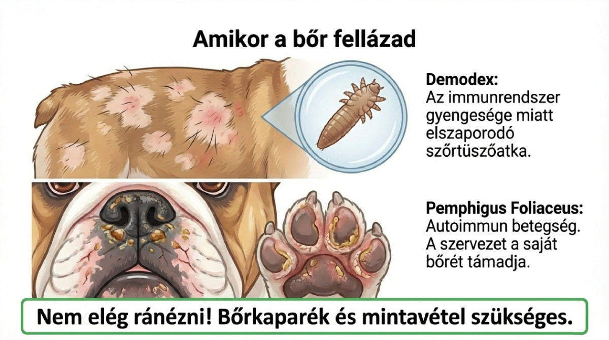 A Demodex egy mikroszkopikus méretű atka, amely a kutyák szőrtüszőiben él. Normál esetben kis mennyiségben minden kutya bőrén megtalálható, de ha az immunrendszer meggyengül vagy genetikailag fokozott hajlam áll fent, az atkák túlzottan elszaporodhatnak és komoly bőrproblémákat okozhatnak.